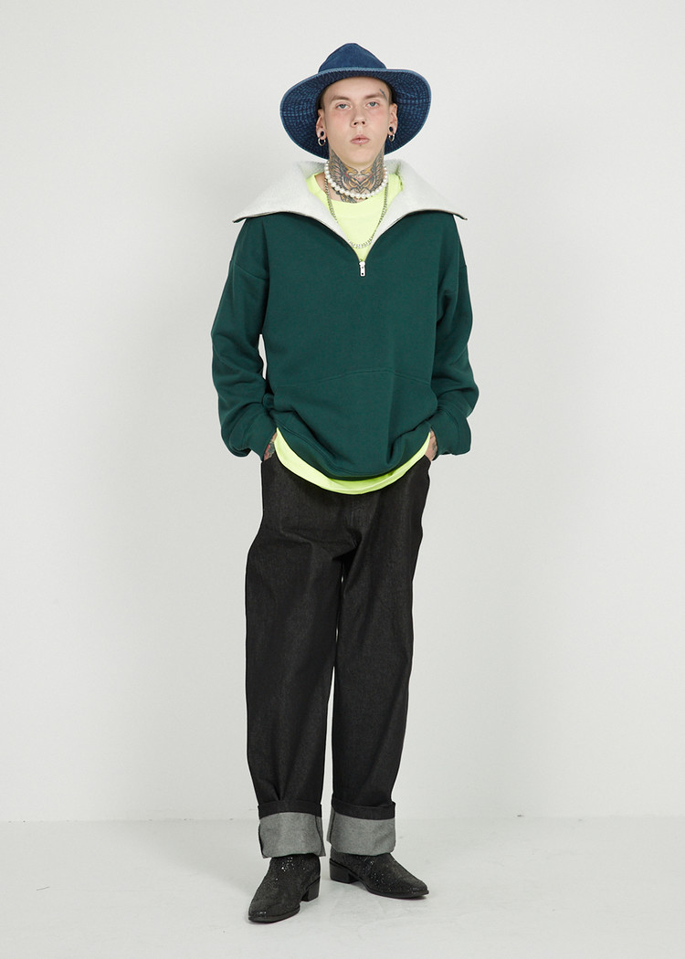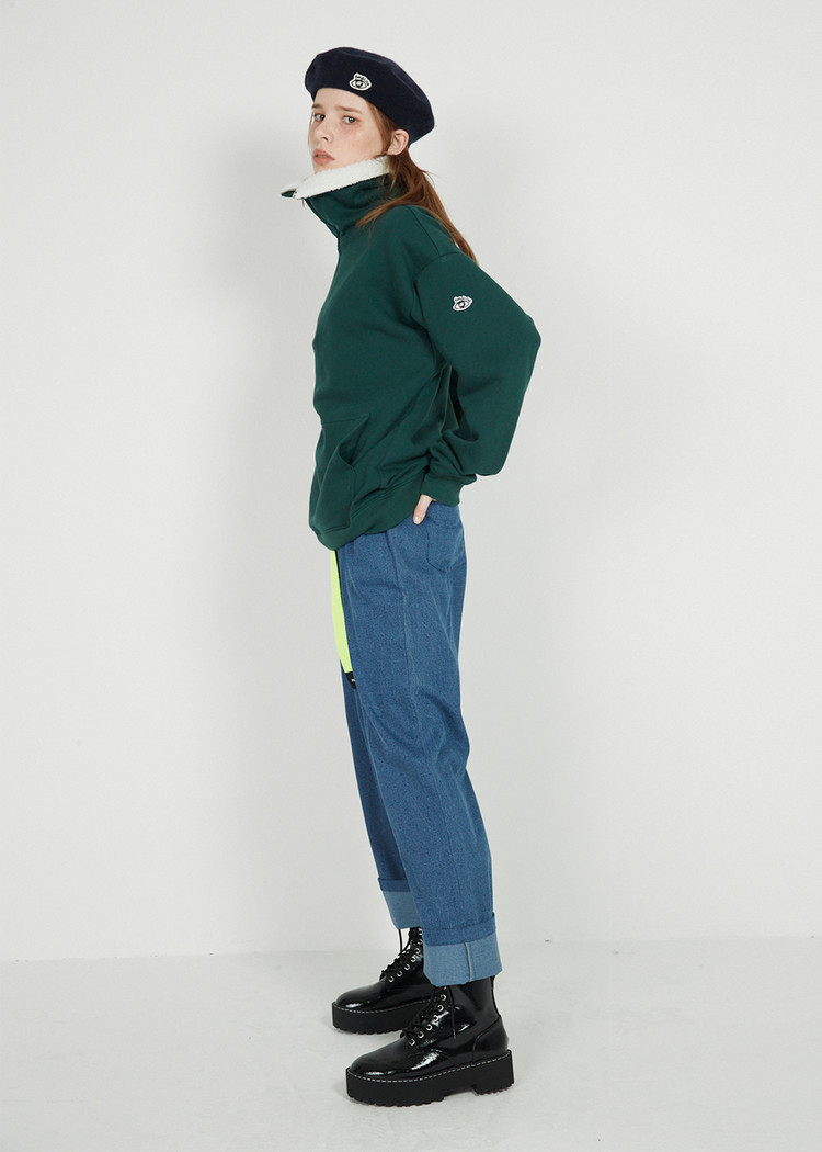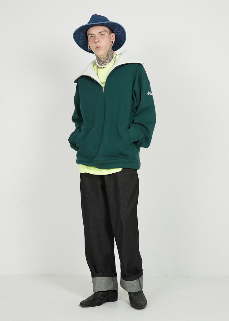 FLEECE COLLAR HALF ZIP CREW_Olive