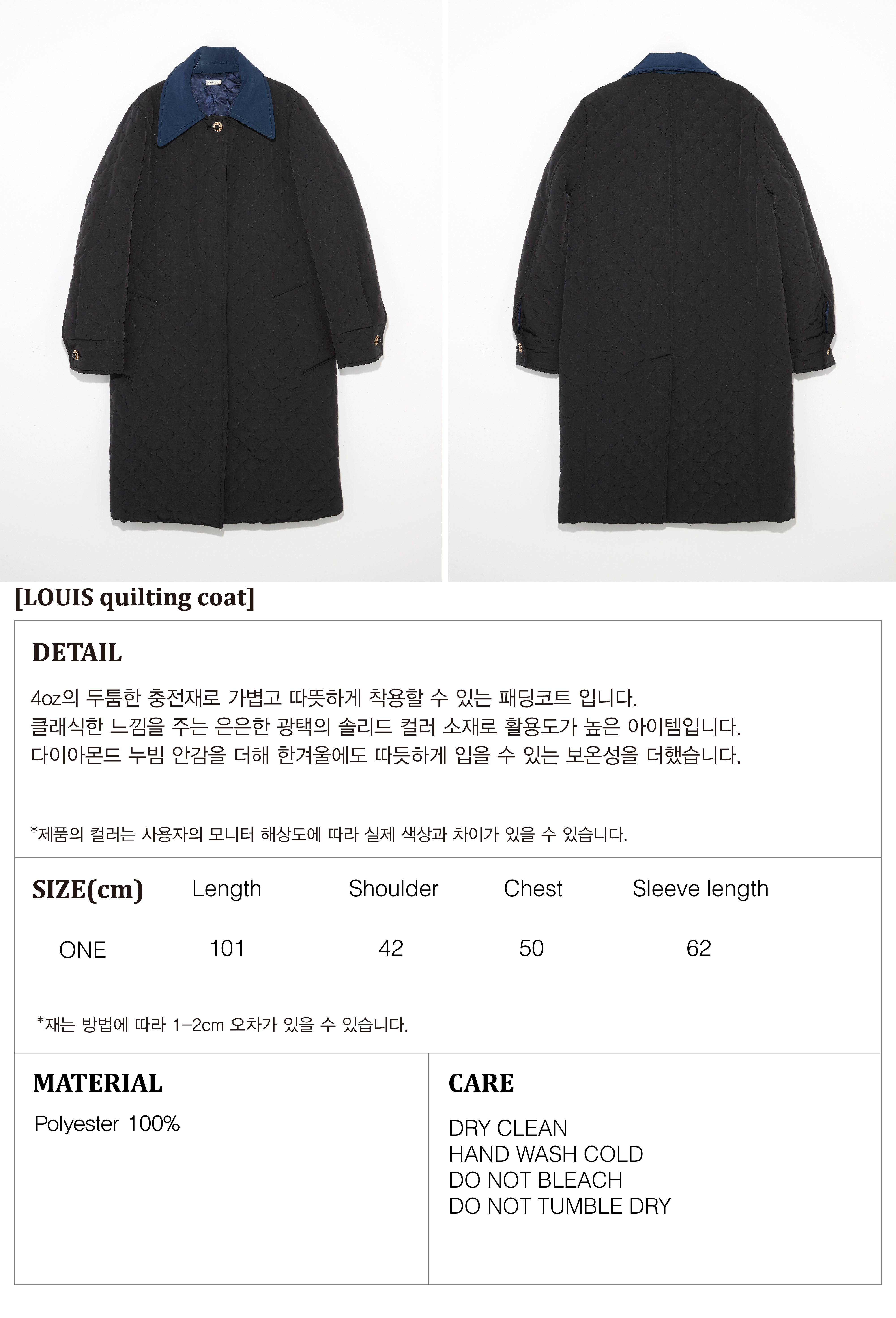 다이아몬드 누빔 안감을 더해 한겨울에도 따듯하게 입을 수 있는 보온성을 더했습니다.