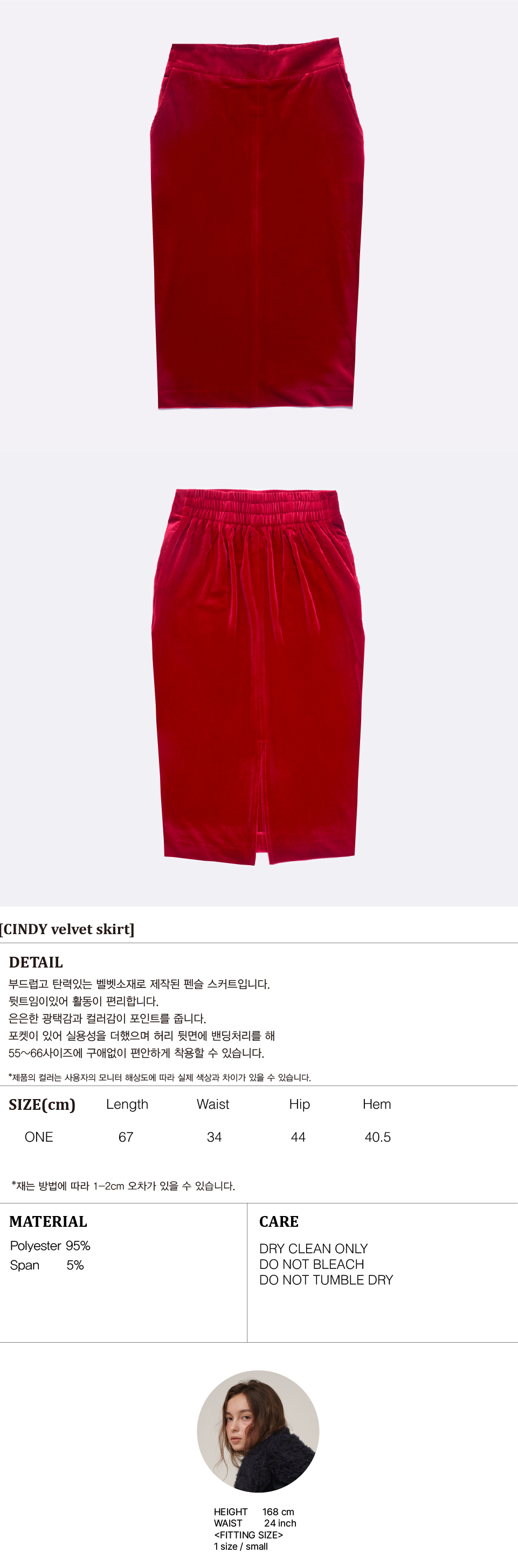 부드럽고 탄력있는 벨벳소재로 제작된 펜슬 스커트입니다.
