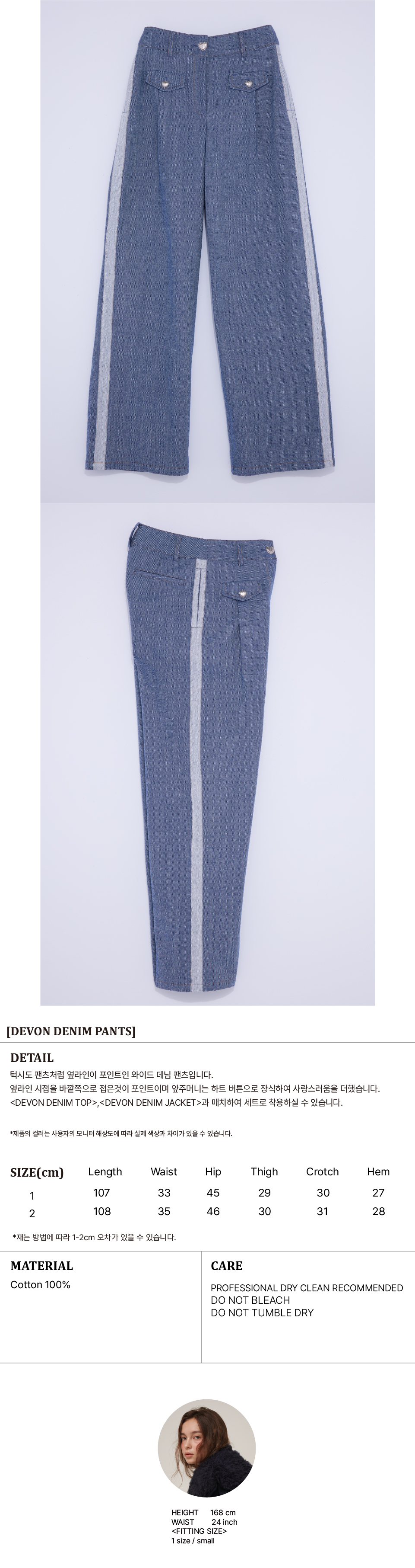 <DEVON DENIM TOP>,<DEVON DENIM JACKET>과 매치하여 세트로 착용하실 수 있습니다.