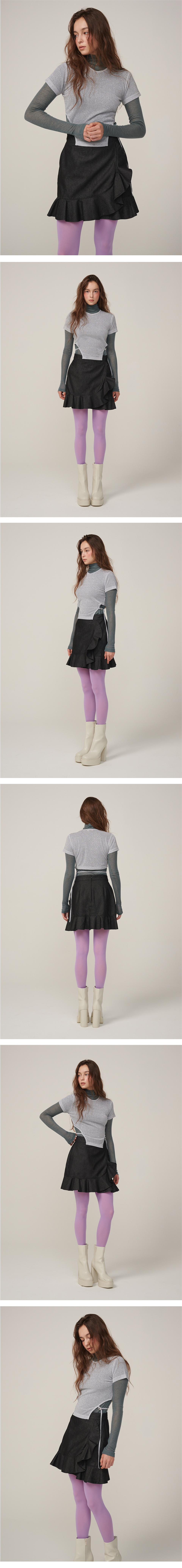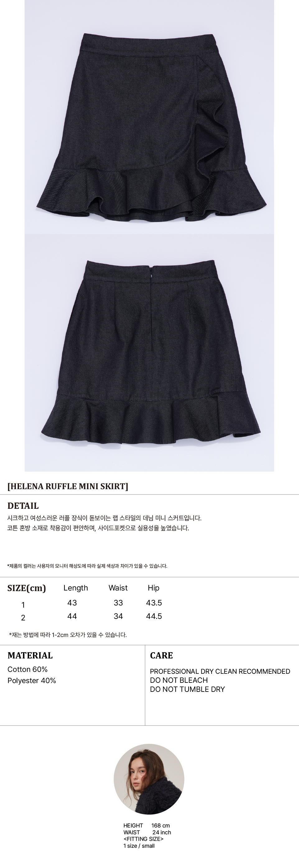 시크하고 여성스러운 러플 장식이 돋보이는 랩 스타일의 데님 미니 스커트입니다. 면 소재로 착용감이 편안하며, 사이드포켓으로 실용성을 높였습니다.