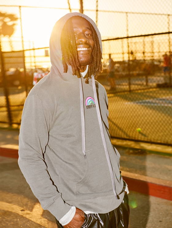 앞면에 무지개 모양의 앙증맞은 ‘아메리카나’ 프린트의 후디입니다. 잘 벗겨지지 않는 최고급 디지털 프린트가 돋보이는 후디는